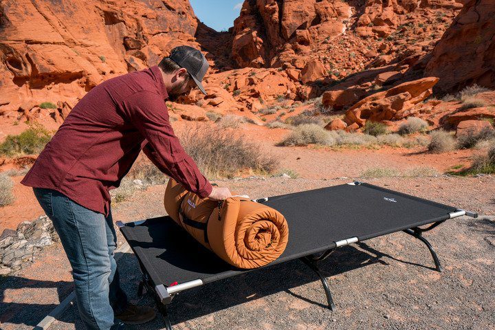 Unfortunately, sleeping bags are not for every person and do little to cushion and save the back. If this sounds like you, you might be interested in trying a sleeping cot, which can be brought open-air with you and serves as a bed away from the house.