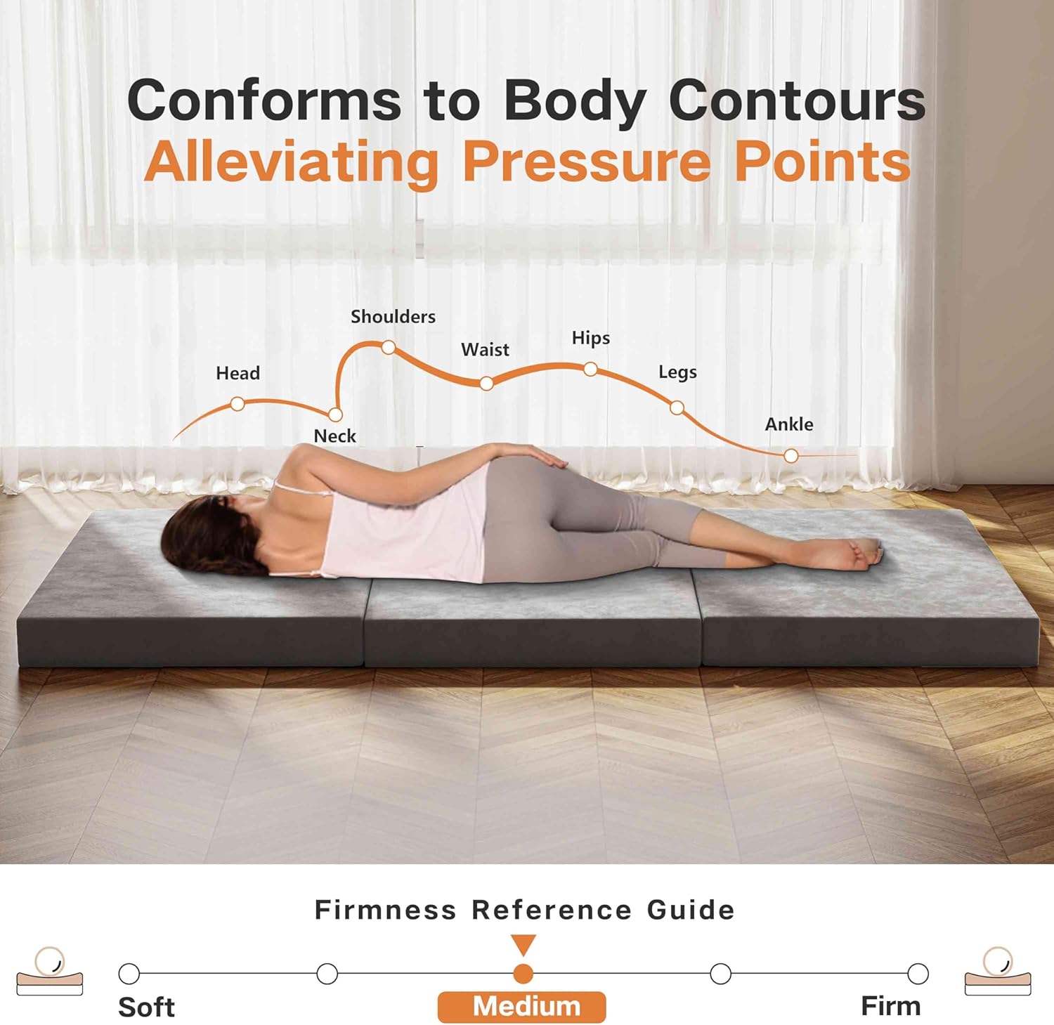 We designed the Swbvs tri-fold mattress to strike a balance between contouring comfort and steady support. The top layer of memory foam gently molds to body curves, which helps relieve pressure points and improves circulation while sleeping. The supportive base foam beneath prevents excessive sinkage and preserves mattress shape over repeated use.